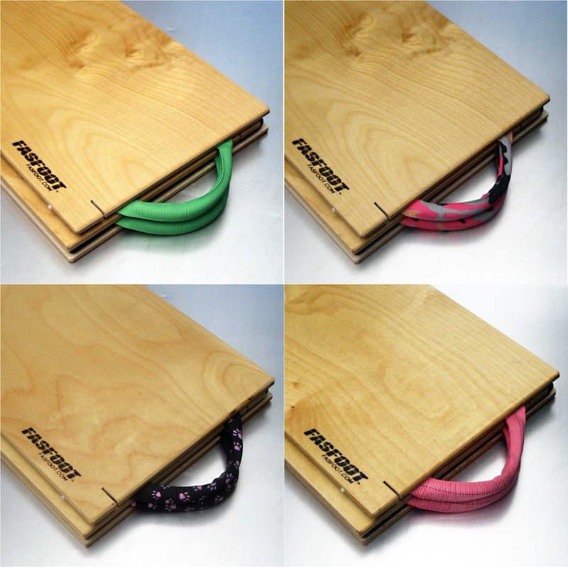 In addition to “The Original” we’re now pleased to offer our natural floor with 16 custom handle colors. Give your floor that personal touch! FASFOOT Classic measures 27″ x 35″, for 6 square feet of dance surface.